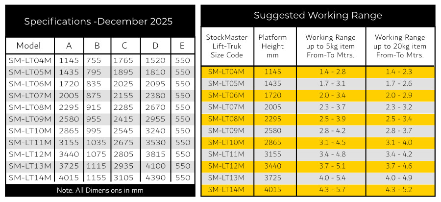 The whole stock picking process can be safely handled by one person removing the need for a second person to pass items up or down. Featuring a reliable manually operated winch, maintenance costs are minimal, and there is no down time for charging of batteries. Items placed on the lift table can be lowered and moved similar to a fork lift, saving the time to transfer them to a trolley, and reducing the need for trolleys.